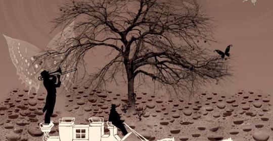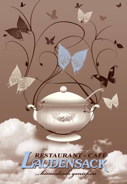 Die Grafiken wurden für das Restaurant-Café Laudensack in Bad Bocklet erstellt. Diese sind auf Leinwand gedruckt und im Restaurant ausgestellt. Die Kompositionen wurden als Scherenschnitt-Motive umgestzt und digital bearbeitet. April / Mai 2011.